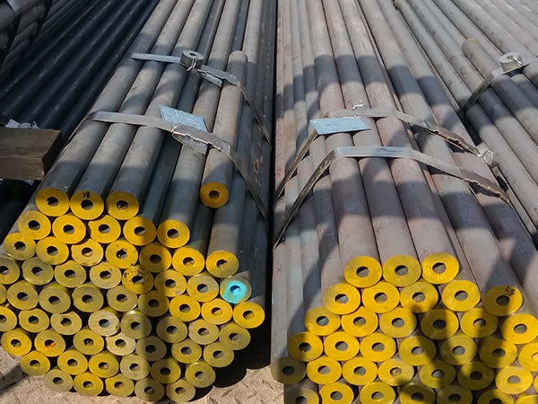 半連軋車間根據(jù)現(xiàn)有的工藝及設備條件,采用空冷方式冷卻。中空鋼軋后快冷易造成硬度超標及內(nèi)部組織不均勻,所以,鋼材在冷床上要每個面冷卻均勻。這樣不僅達到硬度均勻,而且不易產(chǎn)生彎曲,避免矯直而造成內(nèi)部組織損傷,影響釬桿的使用壽命。同時對冷床區(qū)域進行封閉,減少空氣對流,合理控制軋制節(jié)奏,使冷卻區(qū)域氣氛保持在一定的范圍,保證均勻性。并能夠根據(jù)軋制不同的鋼種,采用不同的冷卻工藝制度而達到不同的硬度要求。軋制硬度控制范圍為HRC30~44。